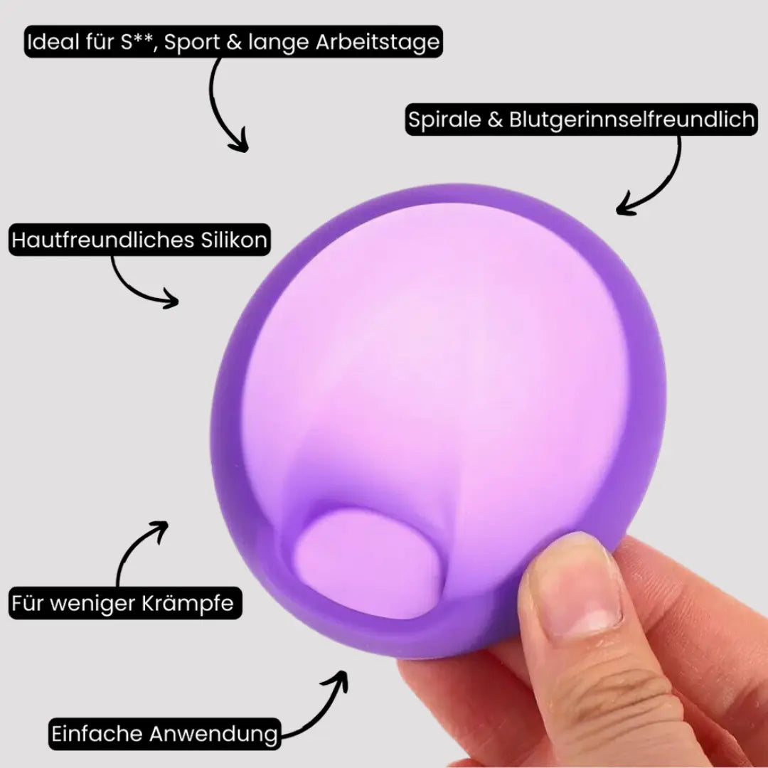 Der 100%hautverträgliche Cup wird sanft in das Scheidengewölbe eingeführt. Diese perfekte Position reduziert effektiv Spannungsgefühle und sorgt für einen freien vaginal Kanal.