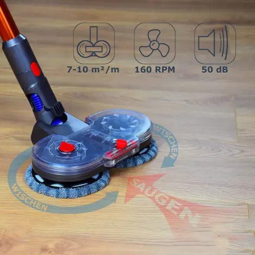 Durch den Dripl-Wischaufsatz verwandelt sich dein Dyson innerhalb von sekunden zu einem 2in1 - Wischer, der dir nicht nur gleichzeitig den Boden wischt und staubsaugt, sondern auch in Kürze auf Hochglanz poliert.